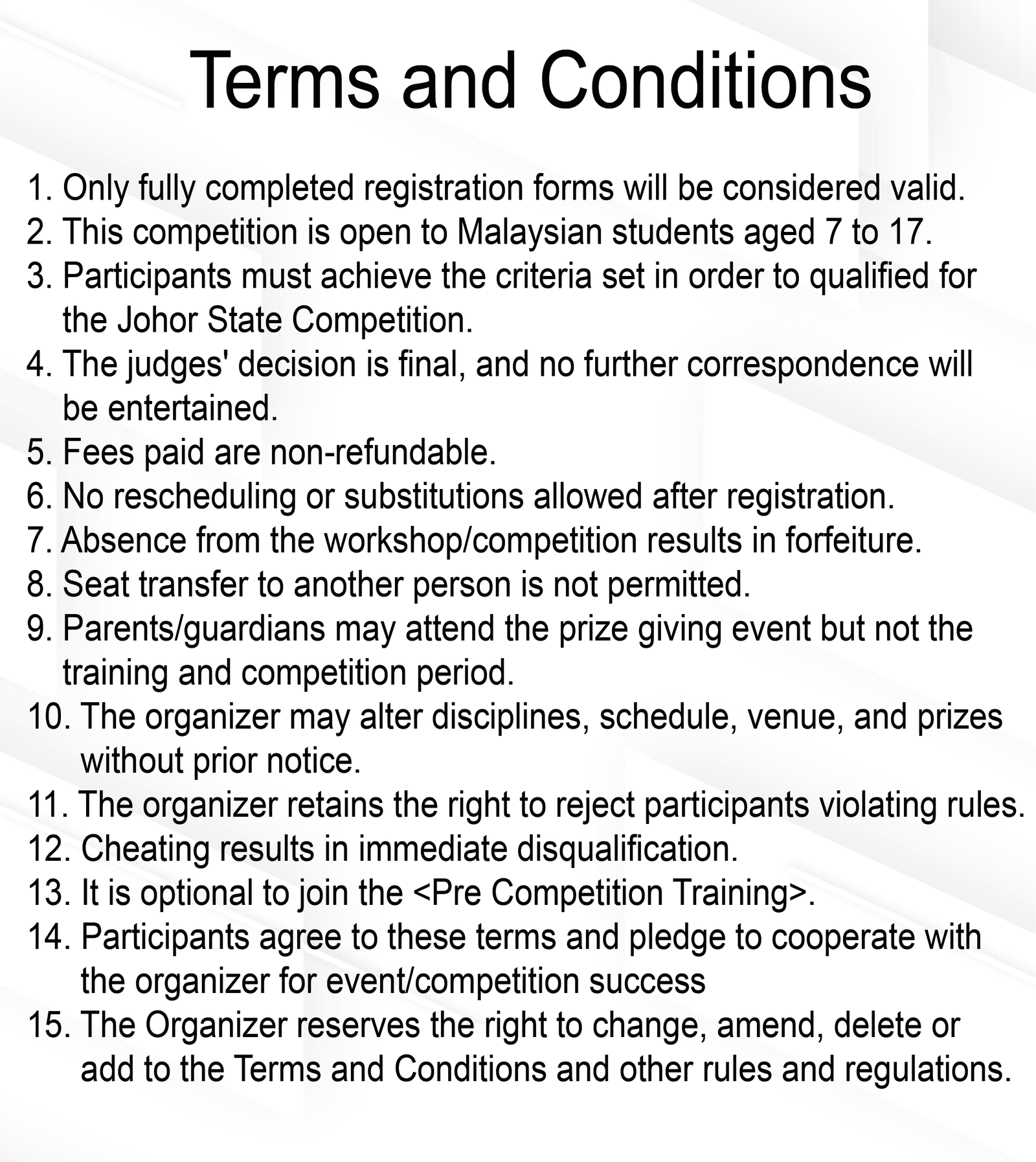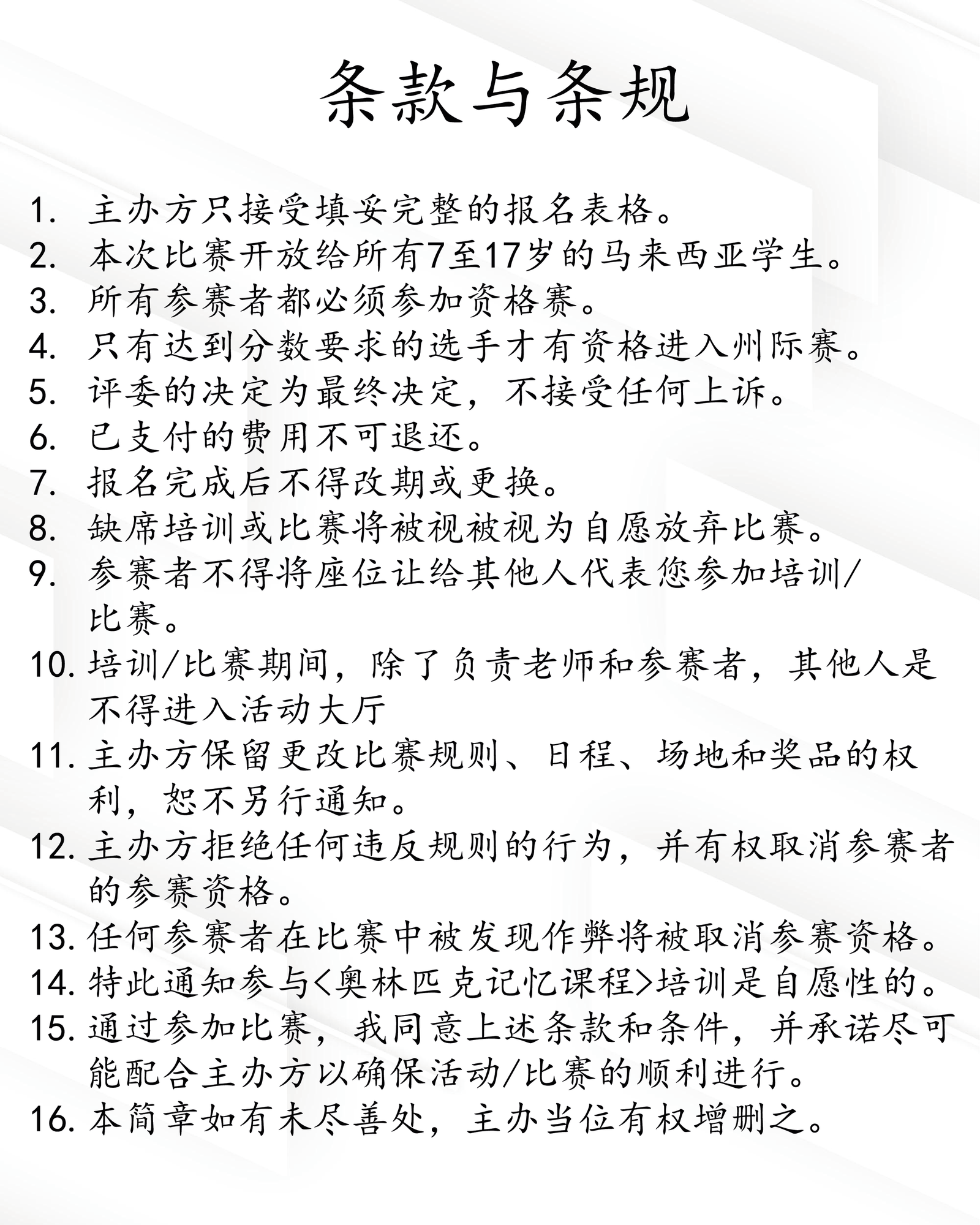 马来西亚奥林匹克记忆锦标赛2025-条款与条规