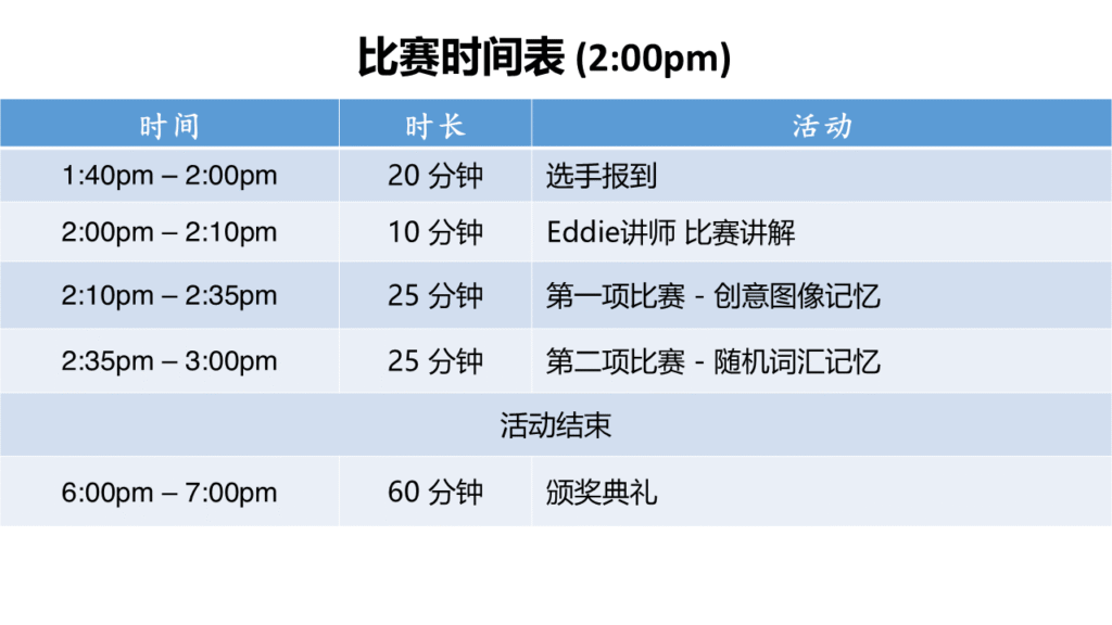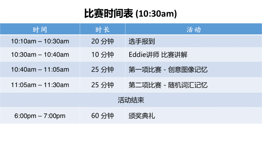 马来西亚奥林匹克记忆锦标赛2025-比赛当天流程